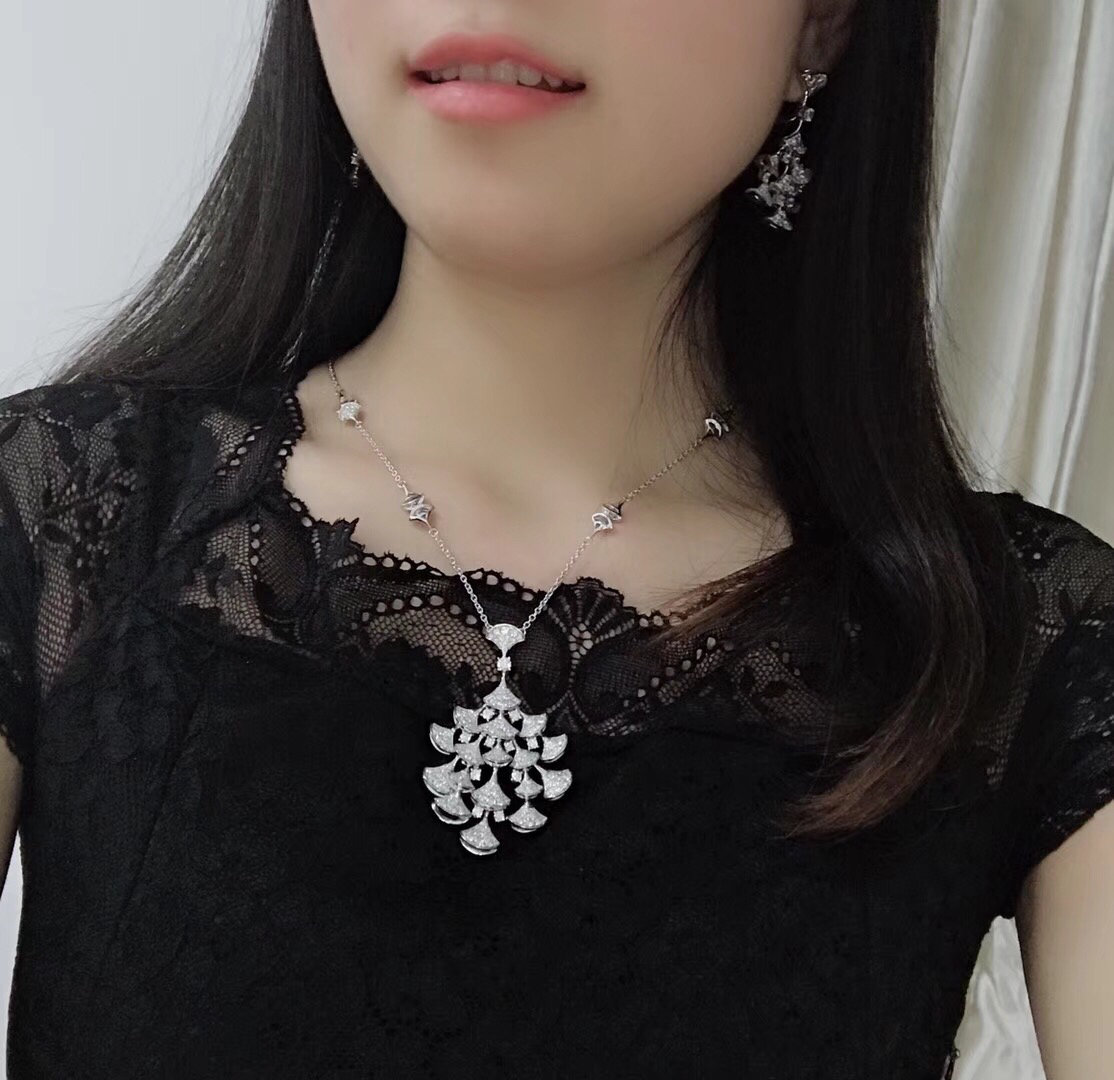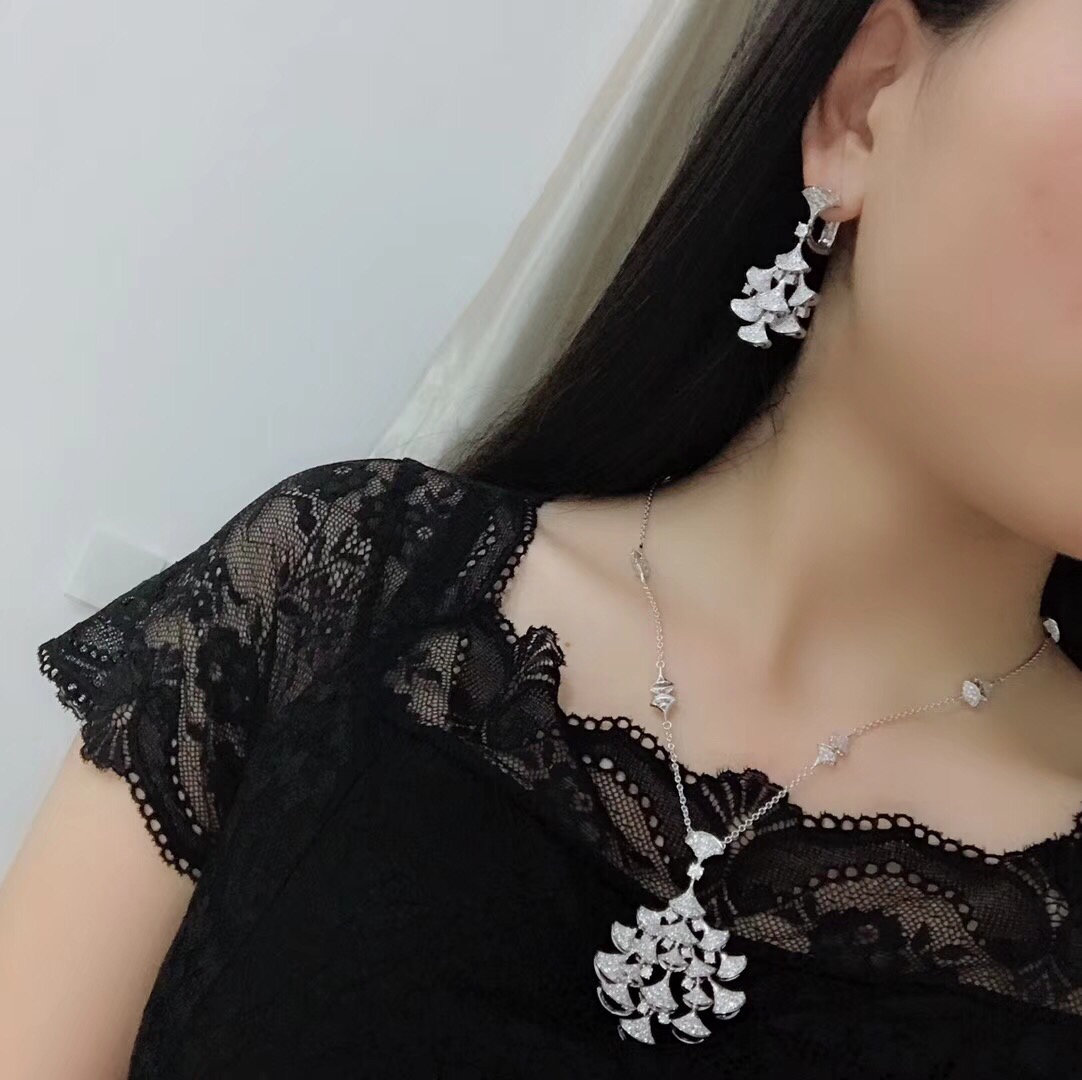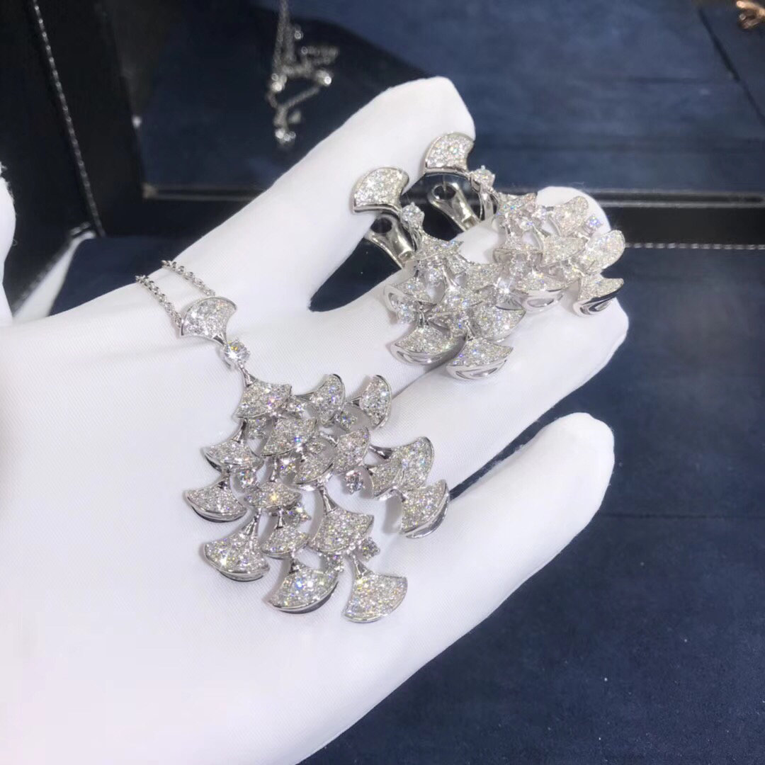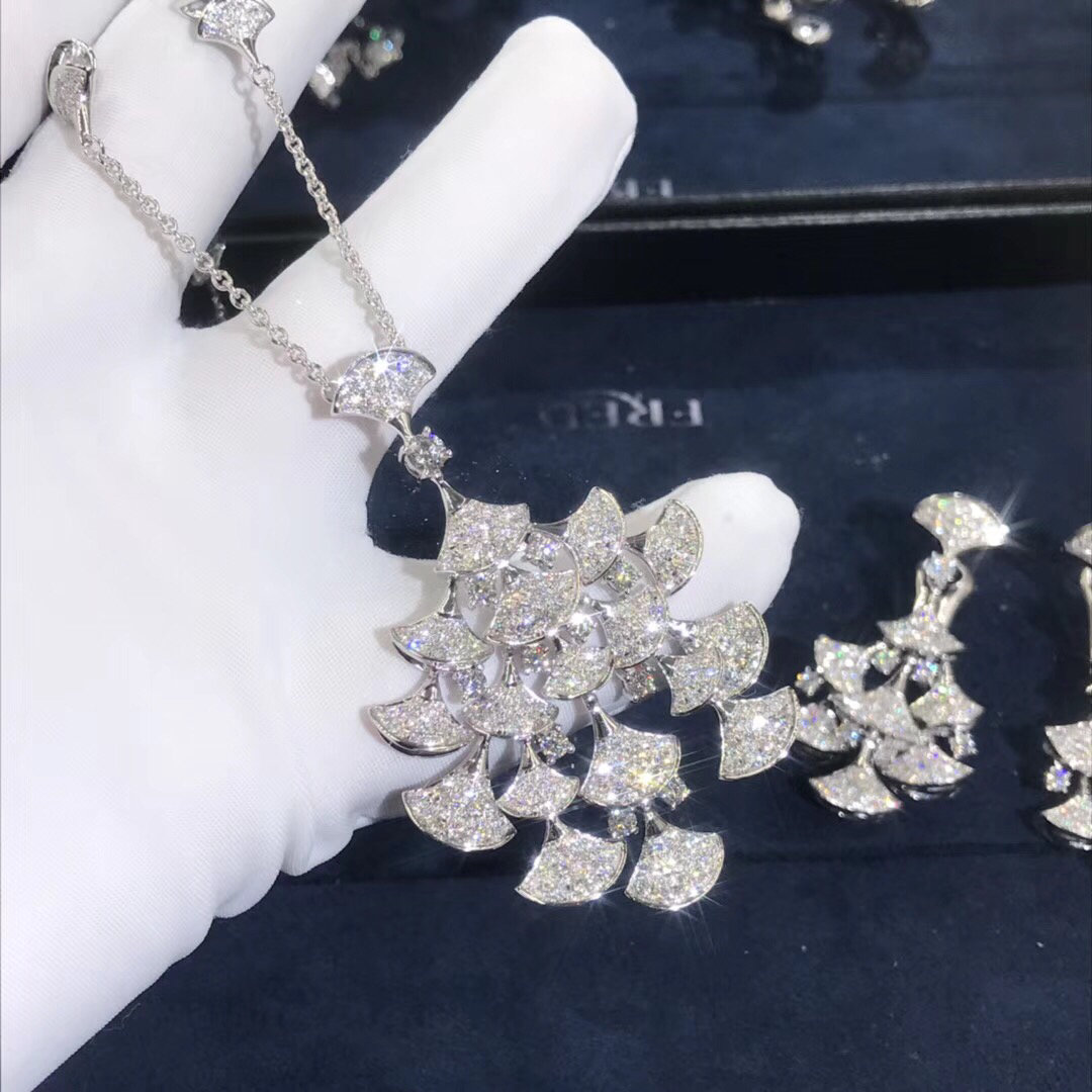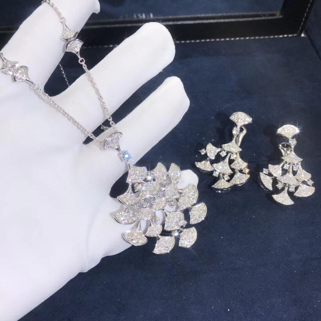 Divas bulgares’ le collier de rêve est en or blanc 18 carats(poids:31.5g) et paver des diamants pleins(565pcs diamants total 4.1ct).